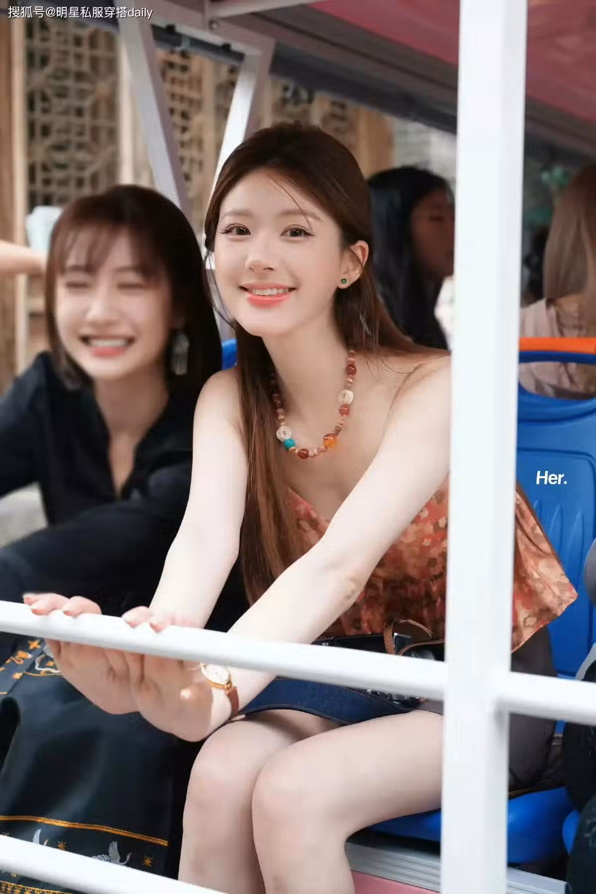 這條短裙以其獨特的剪裁和色彩搭配,完美展現了趙露思的纖細腰身和修長美腿。