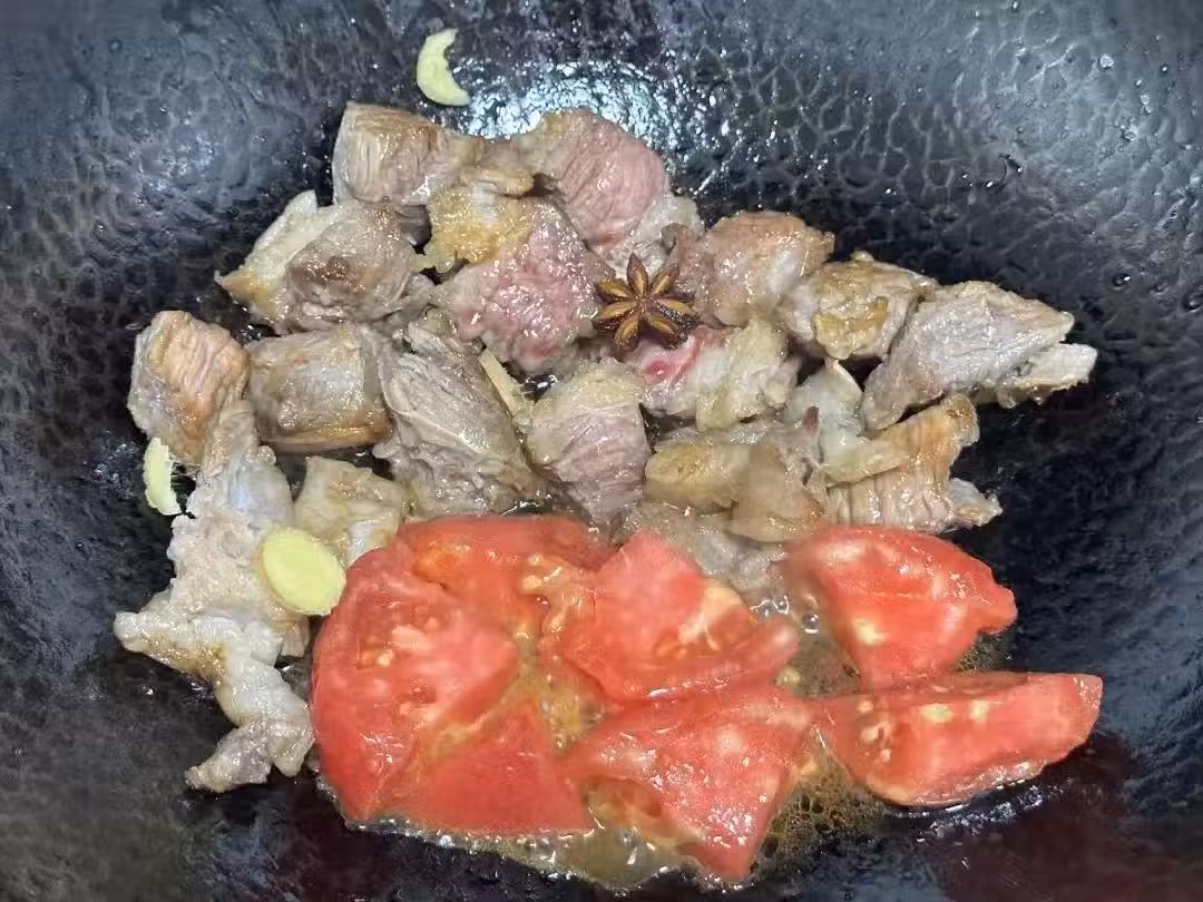 3、加入生抽2勺、老抽1勺、鹽半勺、白鬍椒粉適量翻炒至上色。