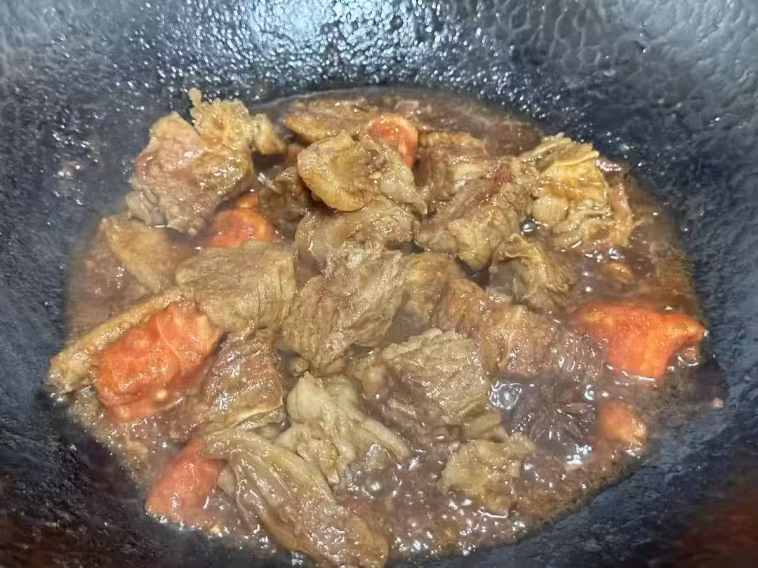 4、加入沒過食材的開水,大火燒開轉小火燜40分鐘左右;這裡一定要加開水,不然牛肉很難熟透。