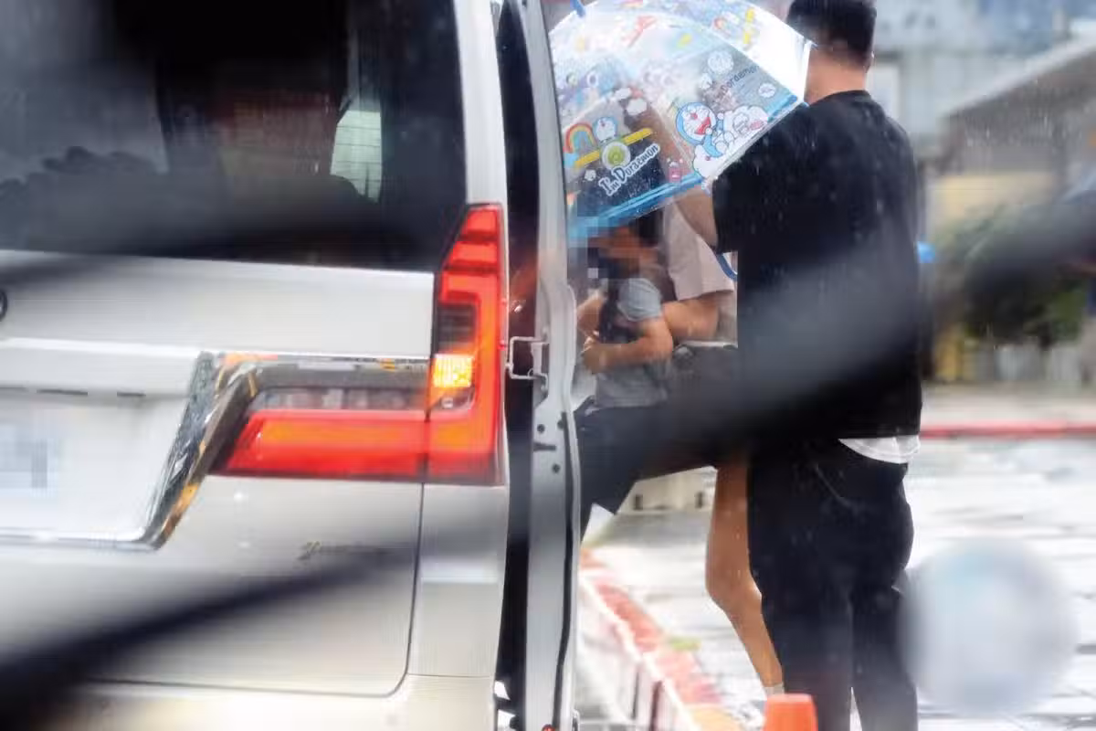 安以軒現身接子女,冒大雨抱兒子上車,當媽又當爹還被婆家人埋怨