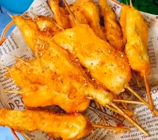 雞胸肉,蔥姜,奧爾良,料酒,蚝油,澱粉,竹籤