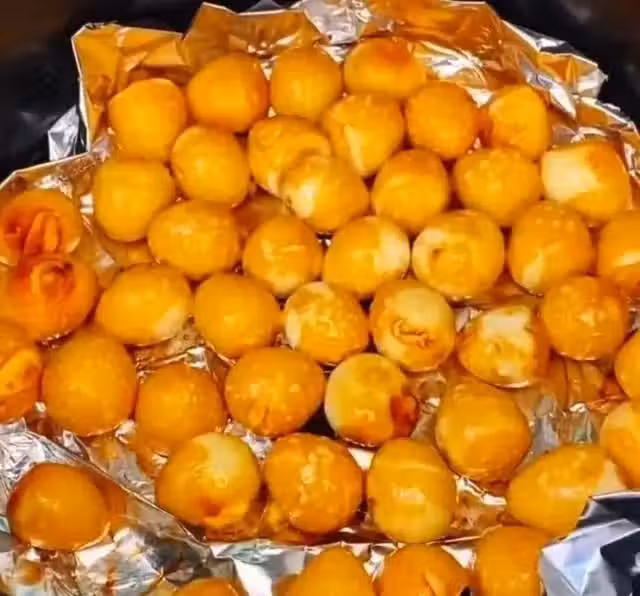 2、空氣炸鍋鋪一層錫紙,放上鵪鶉蛋噴油,180度烤13分鐘,中間翻面即可。