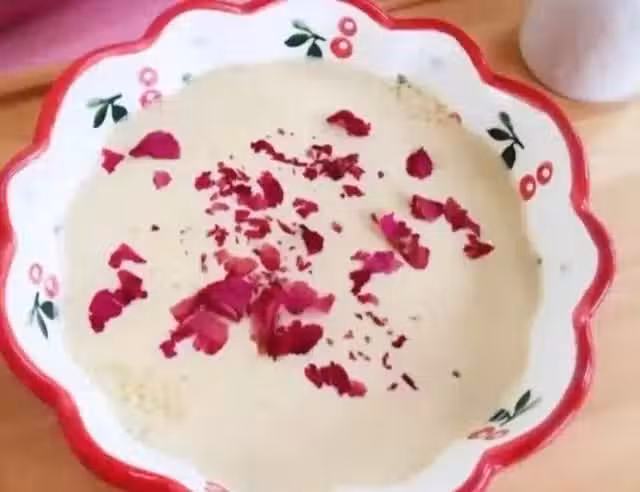 純牛奶200克,薑汁15克,紅糖15克,玫瑰花少許,
