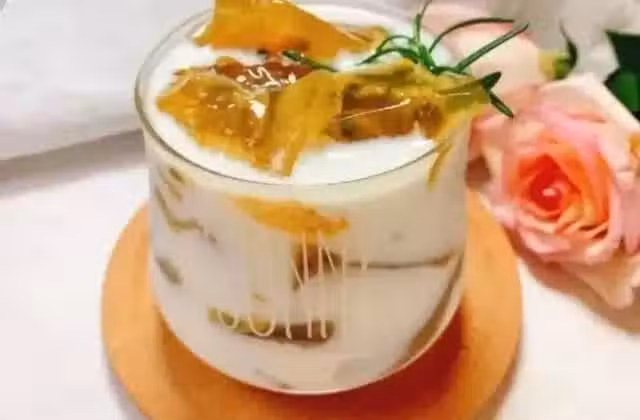 白桃烏龍茶包3袋,白涼粉25克,牛奶適量,百香果2個,蜂蜜2勺