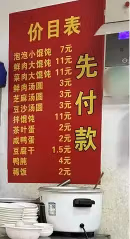 劉嘉玲分享了店內的狀況,環境簡陋,桌上的餐具卻十分乾淨,牆上公開了食品價格,這碗泡泡餛飩要7元,在蘇州這樣的大城市,稱得上物美價廉了。