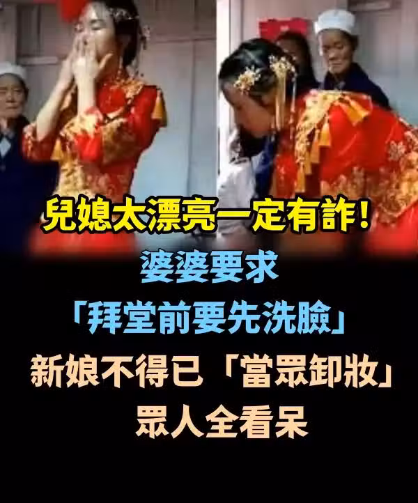 兒媳太漂亮一定有詐!婆婆要求「拜堂前要先洗臉」 新娘不得已「當眾卸妝」眾人看呆了