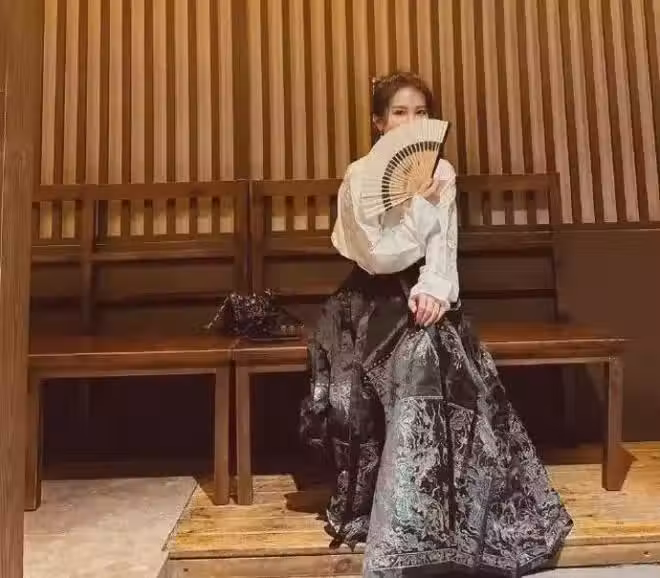 不得不說,陳若琳的形象實在是太優越了,身穿新中式襯衫配馬面裙,給人的感覺特別古典優雅,並且還有種颯爽帥氣的既視感,真是又美又颯。