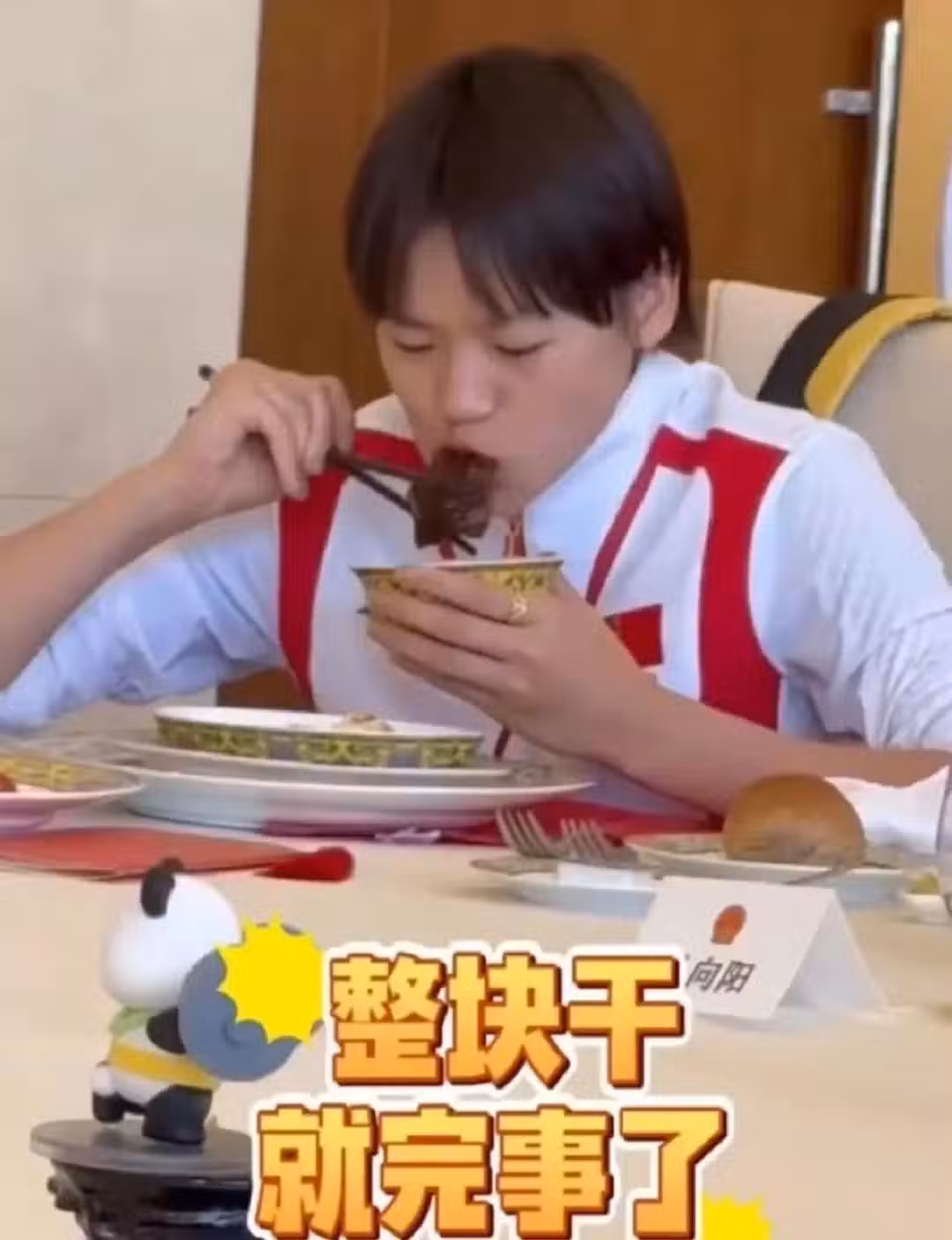 」咔嚓、咔嚓」,全紅嬋的筷子在牛排上不停地舞動,仿佛在進行一場獨特的雜技表演。