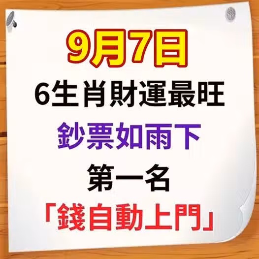 9月7日有偏財,鈔票如雨下的生肖! 第1名「錢自動上門」