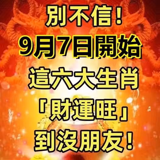 別不信!9月7日開始,這六大生肖「財運旺」到沒朋友!