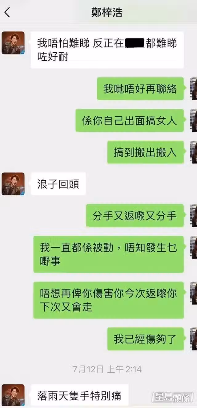 Grace還爆鄭梓浩用古惑招騙補品滾女,「鄭梓浩說COVID後影響到性無能,向我抱怨『之前媾女作孽太多,可能上天要懲罰他』,甚至有功能障礙,不是想搞就搞到,叫我買點中藥給他調理,我傻乎乎買了鹿尾巴丸,他收到後帶回內地吃,說需時進補要日日吃,後來才知原來是搞小三搞不定,叫我買東西給他,這個人黐線同變態,都不好意思跟別人講,是回家前吃飽了,縱慾過度,導致性功能出障礙。