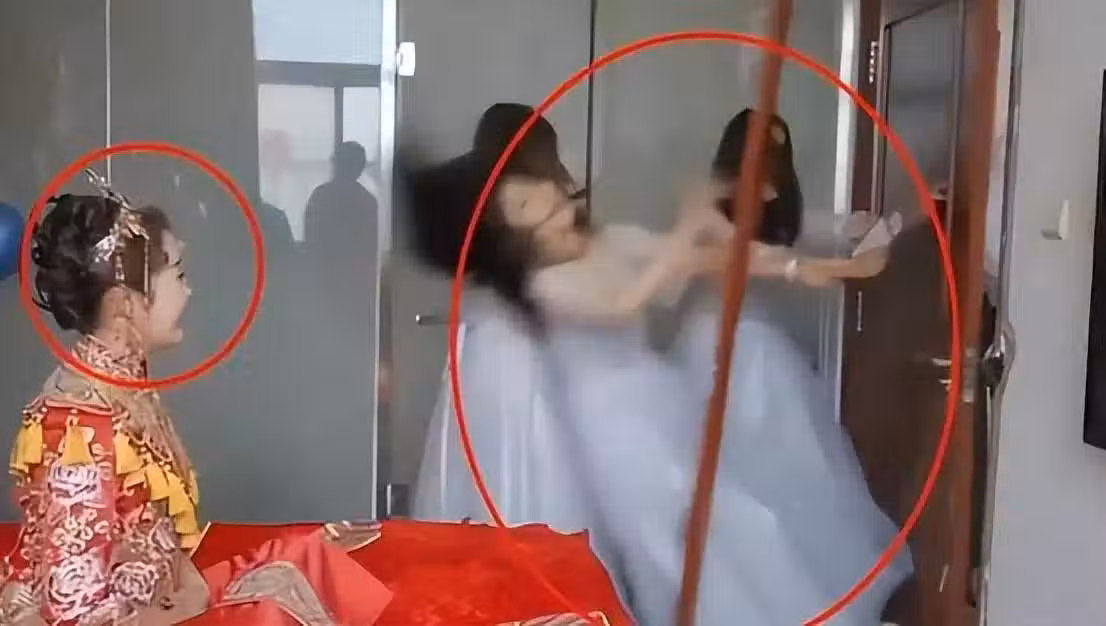 沒想到,這外面的伴郎竟然連人帶門一起踹飛,伴娘整個人受到強大的撞擊力飛了出去,在倒在地上時,還被門上脫落的木條砸到臉。