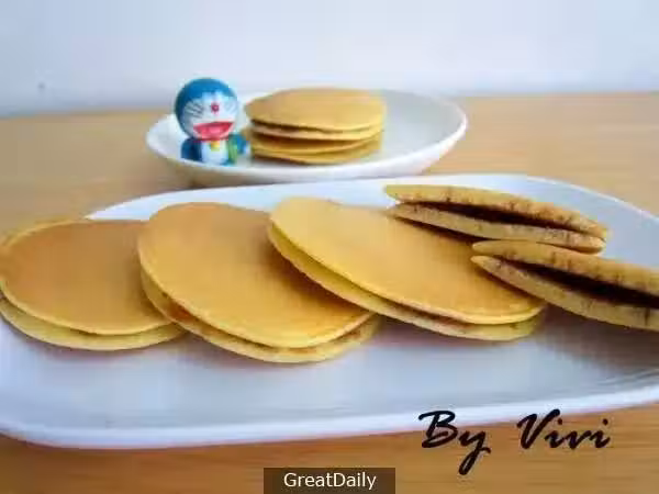 5)然後平底不粘鍋預熱後(小火),不必放油,麵糊用湯匙攪拌均,舀起一湯匙滿的麵糊,慢慢的放入鍋里,當麵糊表面出現泡泡後,就可以翻另一面在煎一下就可以起鍋了,不用太久,以免焦了。