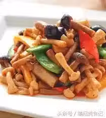 美白菇150公克,柳菘菇150公克,甜豆100公克,黃甜椒80公克,辣椒片15公克,薑片15公克,素沙茶醬2大匙,素蚝油1小匙,香菇粉少許,鹽1/4小匙,香油1小匙