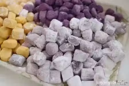 3.蒸 熟 後 , 將 紫 薯 、 芋 頭 和 紅 薯 裝到 不 同 的 碗 里 ,