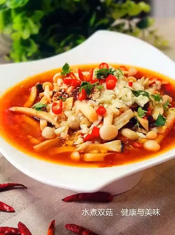 白玉菇、杏鮑菇、生菜,豆瓣醬、干辣椒