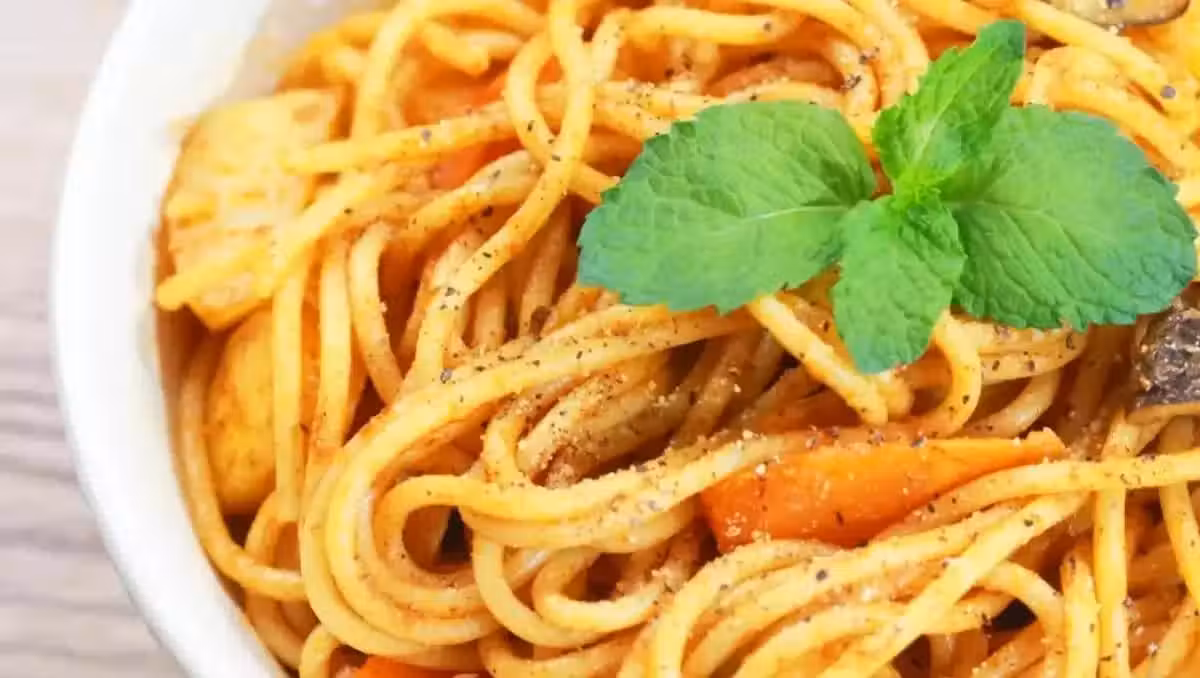 6. 加入意面翻炒均勻,即可裝盤食用。