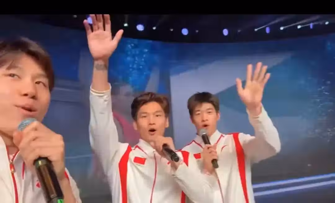 笑噴!中國游泳隊合唱,6個人6個調,王楚欽笑崩了,臉部失去管理