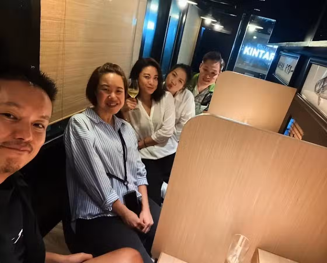 廖碧兒幾天前曾分享聚餐照片,疑似男友出現在照片的左下角。