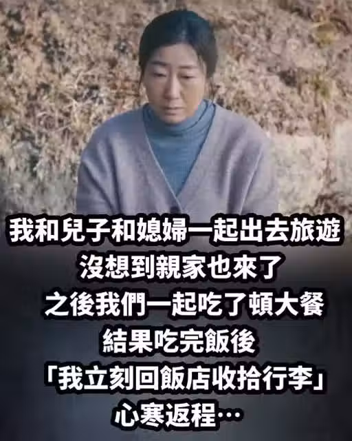 我和兒子和媳婦一起出去旅遊,沒想到親家也來了,之後我們就一起吃了頓大餐,結果吃完飯後「 我立刻回飯店收拾行李 」心寒地返程回家…