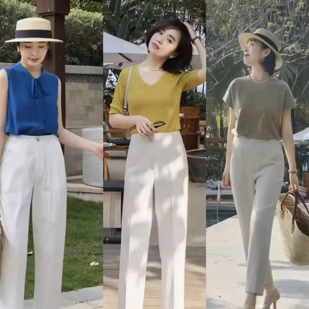 女人褲子不要總穿黑色,還可以試試百搭的白色褲裝,清爽又耐穿