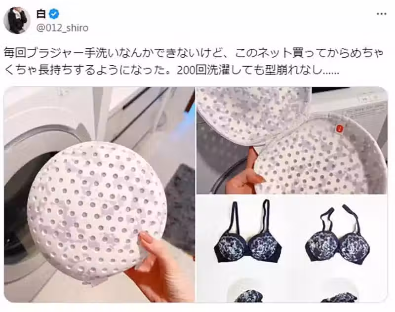 日本一位暱稱「白」的帶貨網紅,最近發文介紹了一款洗衣袋,號稱胸罩洗200次都不會壞。