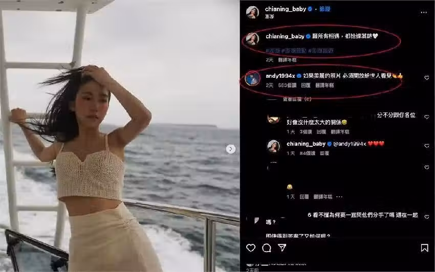但值得一提的是,家寧幾乎也在同一天透過IG發布了同一句話「願所有相遇,都恰逢其時」,不知是否是兩人的刻意互動,Andy隨後也驚喜現身留言區,附上比贊、鼓掌等圖案回復同一句話「如果美麗的照片,必須開放給世人看見」。