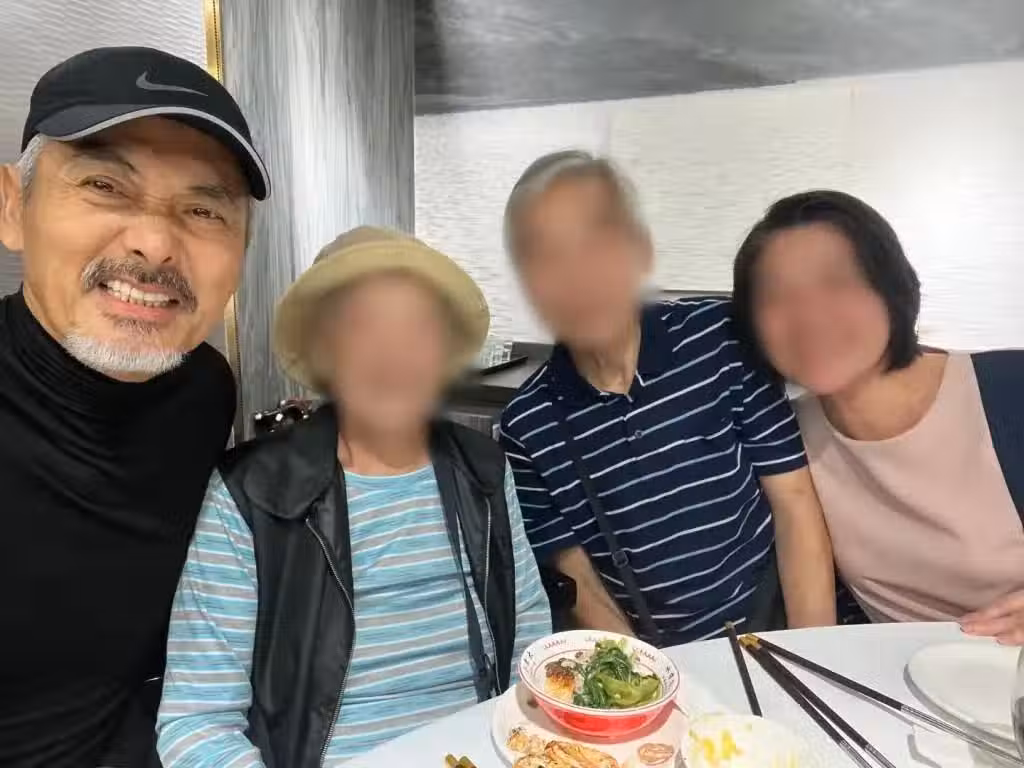 周潤發滿足所有要求,特意走進包廂來到該網民一家的餐桌前合照,不僅坐在老人身邊自拍,還站在最前面掌鏡拍多張合照。