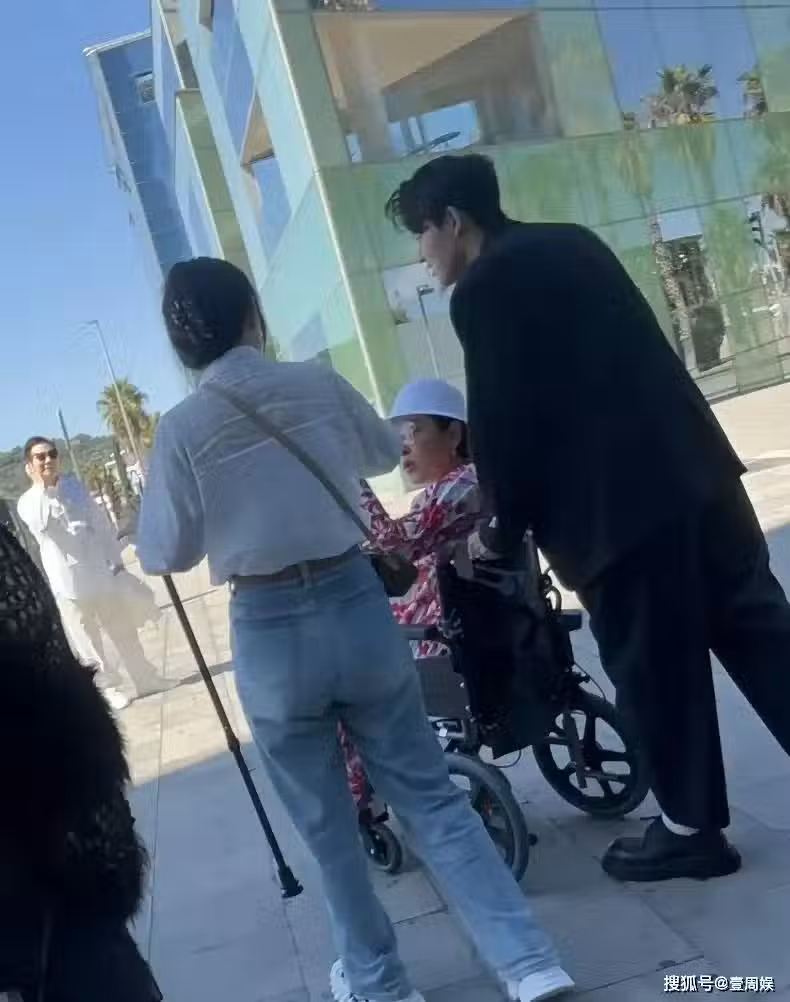 向太現身西班牙被偶遇,坐輪椅出行心情好,向華強走路帶風氣場強