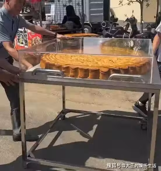 看圖片,這個月餅大概得有幾十斤左右吧!據說還是伍仁餡的月餅!