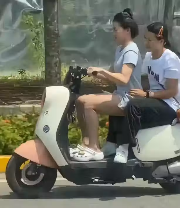 騎著新電動車,姐妹連後視反光鏡也沒有來得及裝上,連頭盔也沒有來得及拿,直接開始「飆」起了車,特別溫馨的畫面。