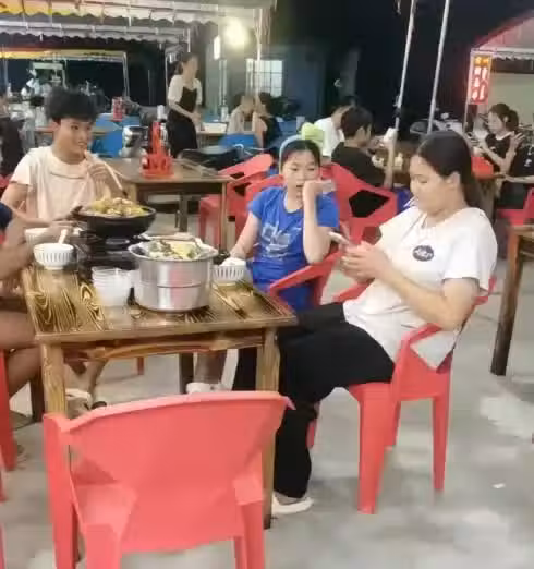 全紅嬋抱孩子吃大排檔,回家後越來越可愛,本地村民都很愛護她