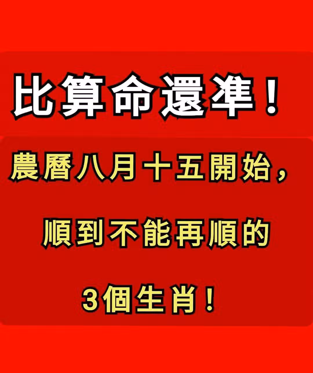 比算命還凖!農曆八月十五開始,順到不能再順的3個生肖!