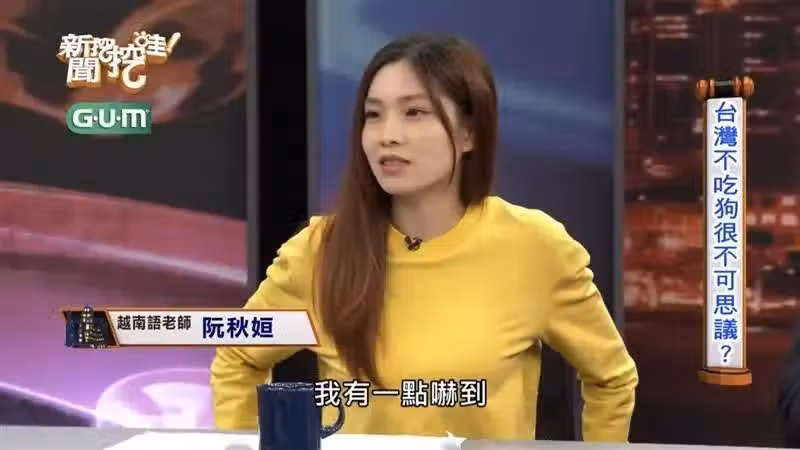 阮秋姮接著指出,越南人吃狗是吃那種「飼育的狗」,不會吃土狗,因此來台灣聽說這地方沒吃狗,覺得很不可思議,不過這就是「文化差異」,我能接受吃狗肉,也能接受不吃狗肉。