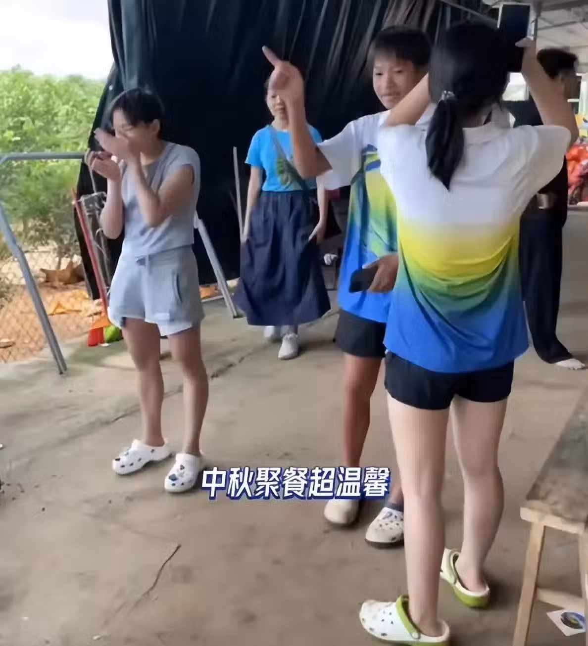 鏡頭之中的全紅嬋站在弟弟和妹妹身邊,一家人好開心啦。