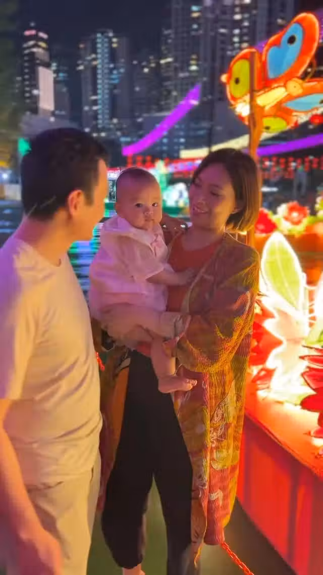 43歲香港女星帶10個月女兒賞花燈,腹部隆起孕味濃,曾計劃生4胎!