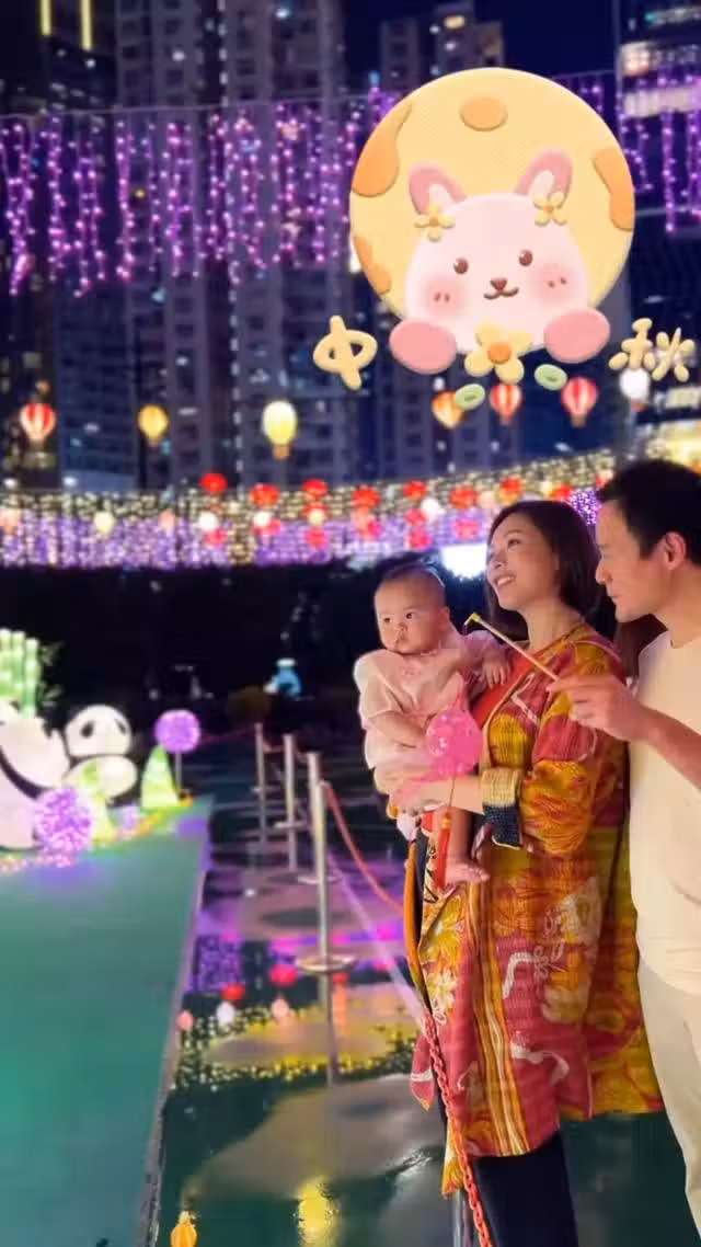 43歲香港女星帶10個月女兒賞花燈,腹部隆起孕味濃,曾計劃生4胎!