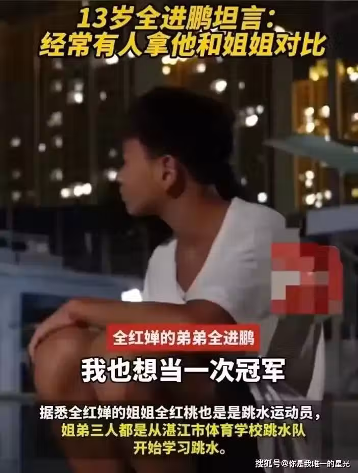 一段訓練視頻在網上傳開後,全進鵬的名字迅速火了起來。視頻里,他跳得又高又遠,入水的時候幾乎看不到水花,就像時間突然停止了一樣。網友們紛紛留言:「這簡直就是全紅嬋的翻版啊!」、「弟弟也是跳水界的未來之星!」這些誇獎像潮水一樣湧來,讓全進鵬感受到了前所未有的關注和期待。