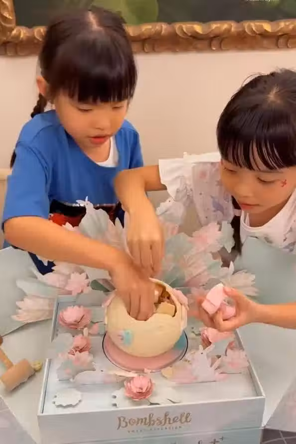 看到糖果球里的小零食,姐妹倆都超級驚喜,臉上的燦笑無敵萌。值得一提的是,小姐妹這次臉上還化了一個小小的「中秋節妝容」,姐姐的眼尾處描了紅色小花紋圖案,妹妹的圖案則在眉心處。看得出來,兩個小寶貝對這次的中秋節妝非常滿意。看到女兒們滿意,熊黛林肯定也是滿心歡喜。