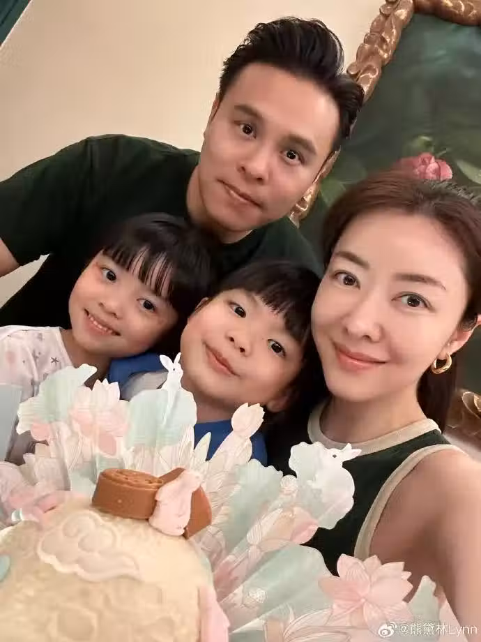 熊黛林中秋節曬全家福,夫妻二人恩愛如初,雙胞胎女兒越長越漂亮