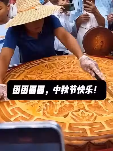 恰逢中秋佳節,全紅嬋爸爸定製了一個200斤的大月餅,免費送給大家品嘗。全紅嬋爸爸親自操刀且這個200斤的大月餅,在開切前,全紅嬋爸爸表示遠來都是客,祝大家團團圓圓,中秋節快樂!