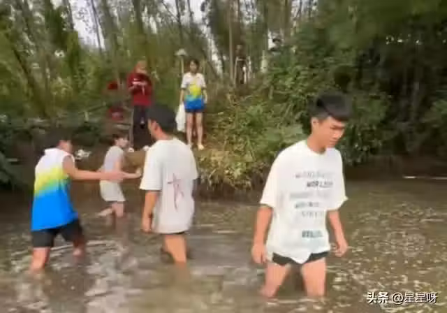 全紅嬋與兒時好友一起下水摸魚,她忘了自己是冠軍!民警一旁緊張