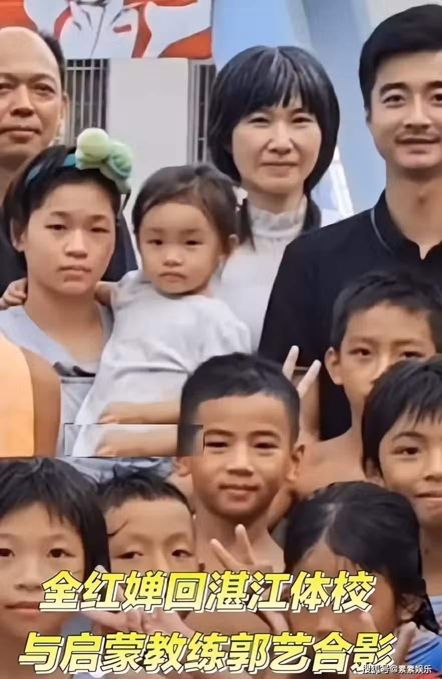 全紅嬋帶弟弟全進鵬回體校,拜訪恩師郭藝教練,和孩子們一起合影