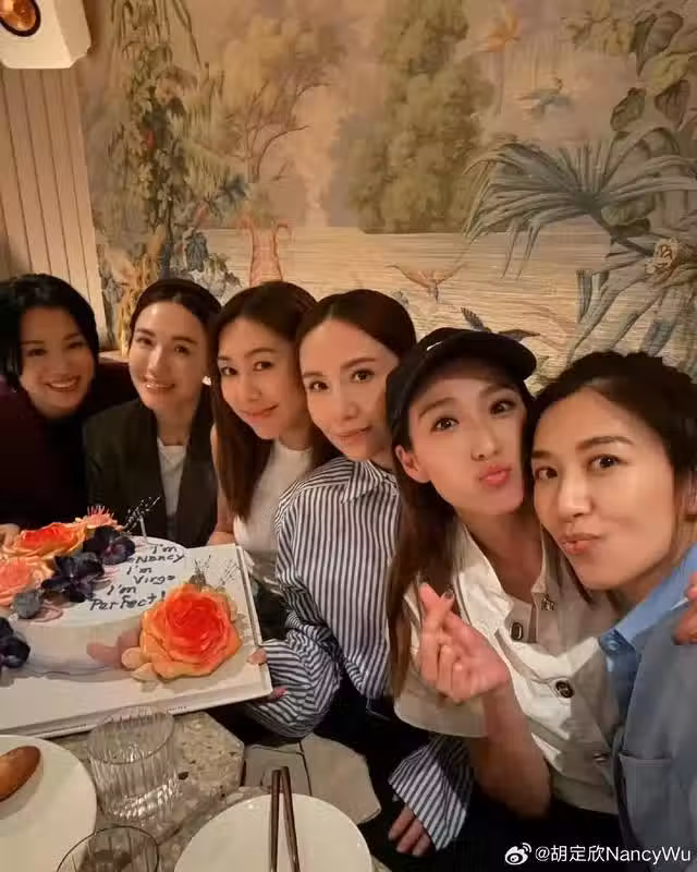 由於這次的聚會非常隨意,幾位女星都沒有特別的打扮自己,即使如此,也難掩各人的星味。算起來這已經是胡定欣今年生日吃到的第n個蛋糕,圈中人緣不錯的她早前在開工時還獲得了劇組人員為其慶祝。