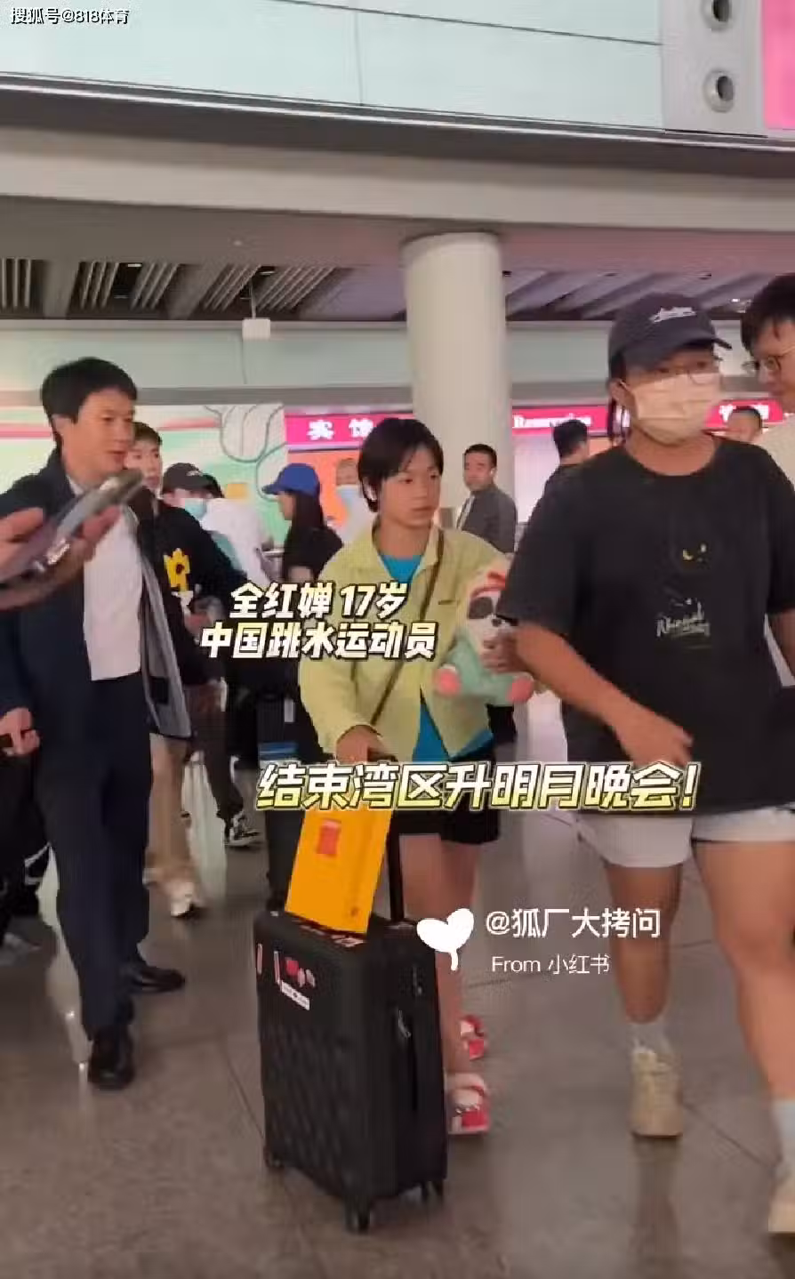 可愛!全紅嬋抱熊貓玩偶從澳門飛回北京,,風風火火發現落下了劉清漪