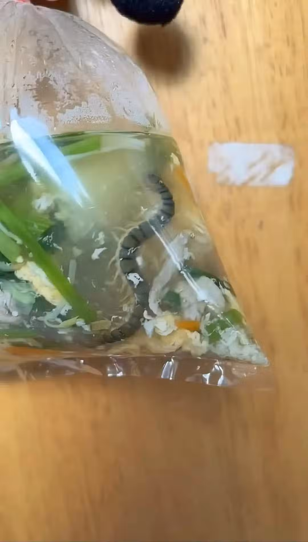 一名網友在臉書《爆廢公社》貼出一張照片,塑膠袋裡頭出現一條驚悚動物屍體,飄移在蛋花湯里,讓原PO頭皮發麻直呼,「這應該不是冬蟲夏草了吧?」