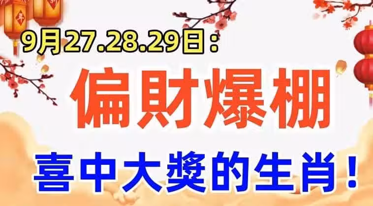 9月27.28.29日:偏財爆棚,喜中大獎的生肖!