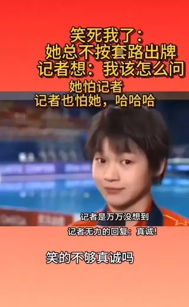 每次全紅嬋被採訪時,她的回答總是能超乎大家的想像,所以很多記者都喜歡採訪全紅嬋,因為她的回答太可笑了,總能給觀眾帶來更多的歡樂
