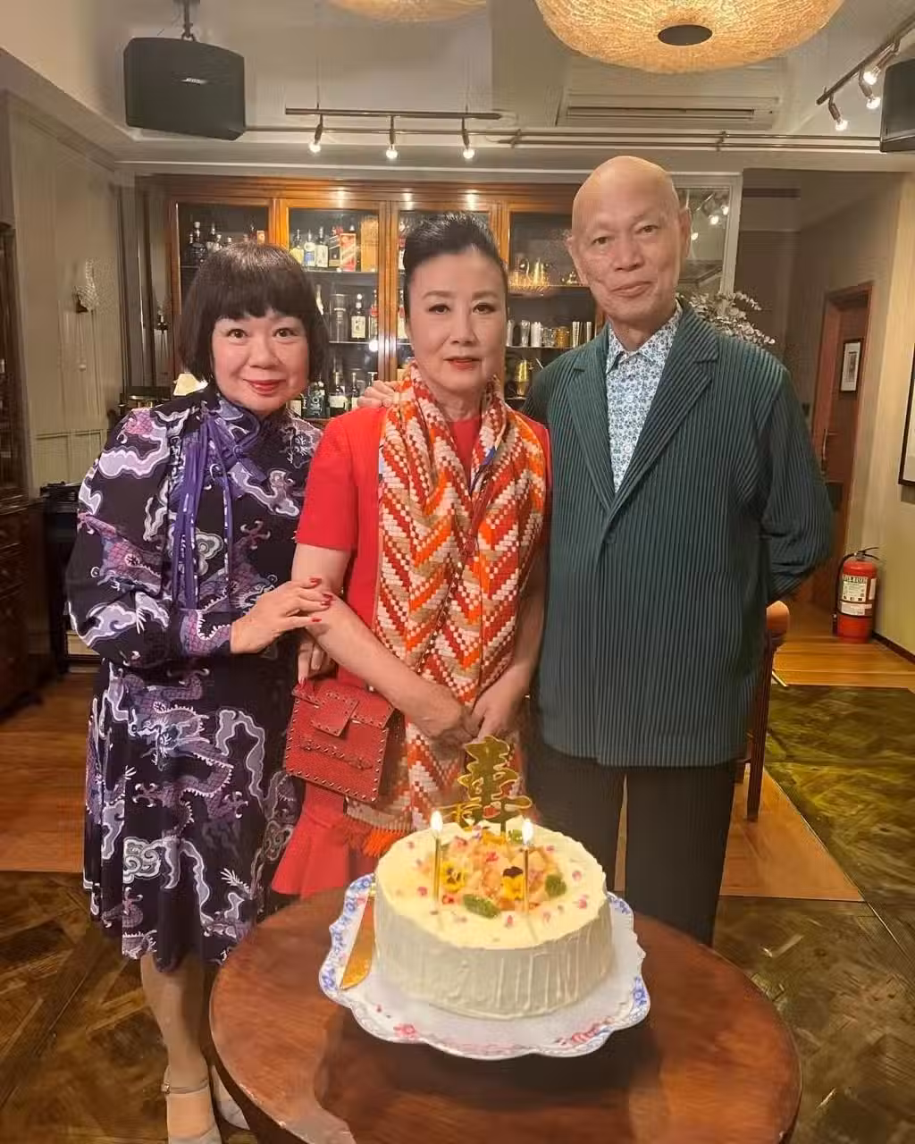 汪明荃慶祝羅家英78歲生日!全身紅打扮喜慶,穿鉚釘高跟鞋潮爆了