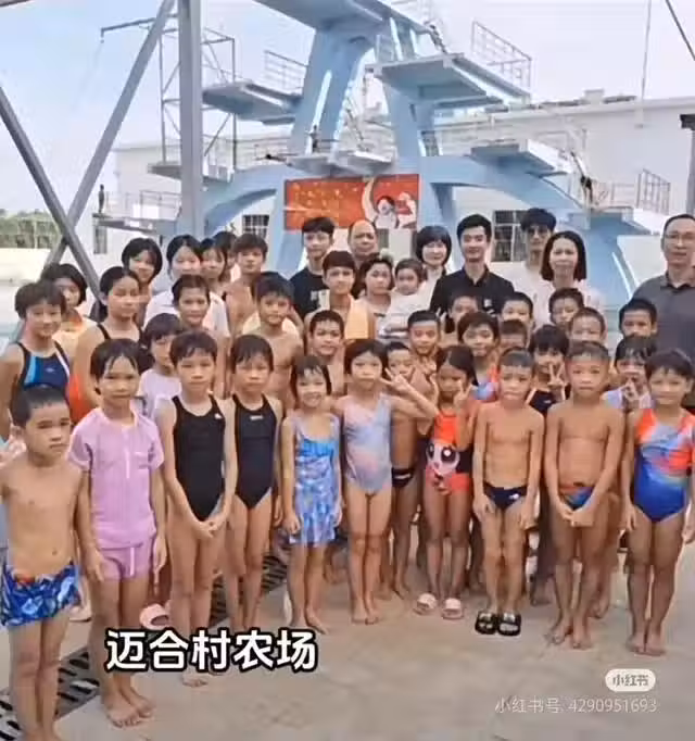 全紅嬋很懂得感恩,回到湛江體校看望恩師郭藝,,和師弟師妹合影!